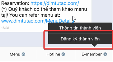 • According to the regulations on the use of Dim Tu Tac E-member cards, if a customer is not the cardholder or the cardholder is not present at the time of dining, the card cannot be used to earn points or enjoy applicable discounts.